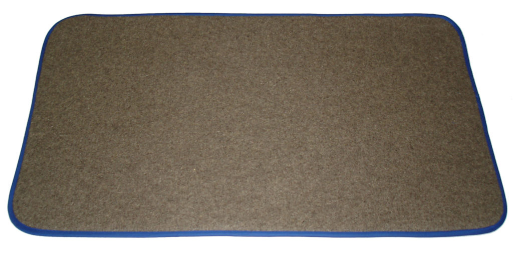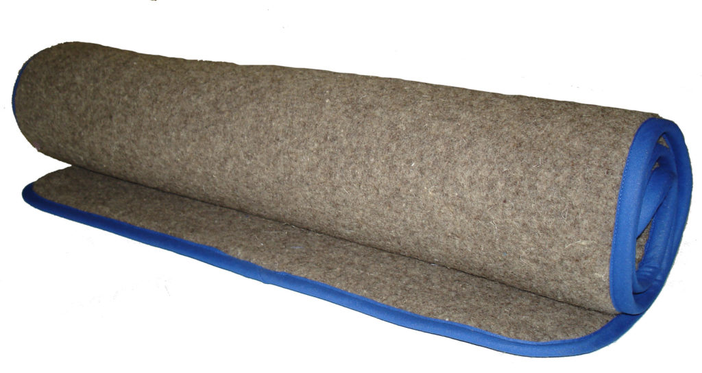 Die Mischung aus veschiedenen Naturwollfarben (je nach Schafrasse) ergeben nach dem Kardieren den Farbton eines warmen Grau. Das gekardete Vlies wird in einem weiteren Arbeitsgang wieder aufgerissen und bei unserer Partnerfirma erneut gekardet und anschliessend zu Nadelfilz verarbeitet. Dieser Nadelfilz ist besonders weich und elastisch. Die Dicke der Bodenmatten beträgt rund 8 mm. Zur besseren Haltbarkeit werden naturwohl Fitnessmatten mit farbigem Einfassband versehen.